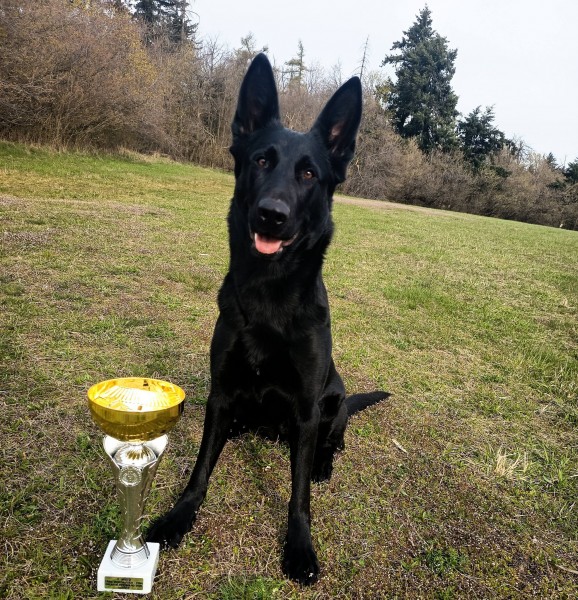 9.4.2017 Winnei z Berounské bašty dnes složila zkoušku Spr 2 (93b.). Hustopeče u Brna Figurant: Lukáš Slowioczek Rozhodčí: Jan Boleslav Cizí prostředí